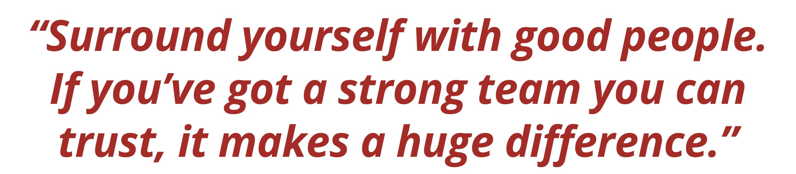 “To surround yourself with good people. If you’ve got a strong team you can trust, it makes a huge difference. We put a lot of thought into who we bring into the business because it’s important that everyone works well together.”